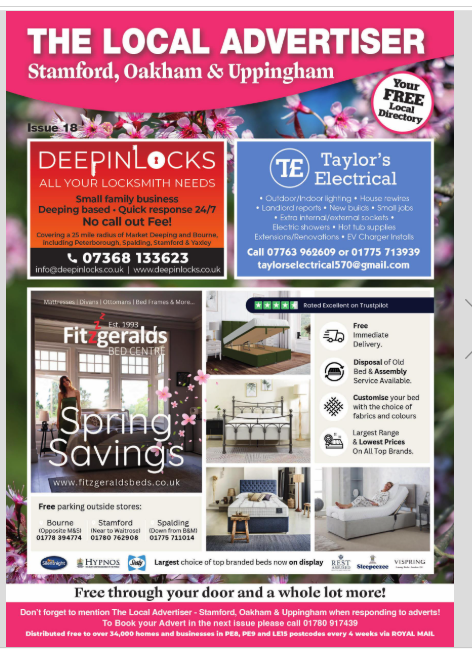 Since this time businesses have found the directories to be a very successful route to market and we have continued to deliver the publications and increased our delivery areas as more homes are built. Due to the success of the publication in 2021 we expanded into Bourne & Market Deeping with The South Kesteven Advertiser and in 2025 we launched our first edition for The Stamford & Oakham Advertiser.